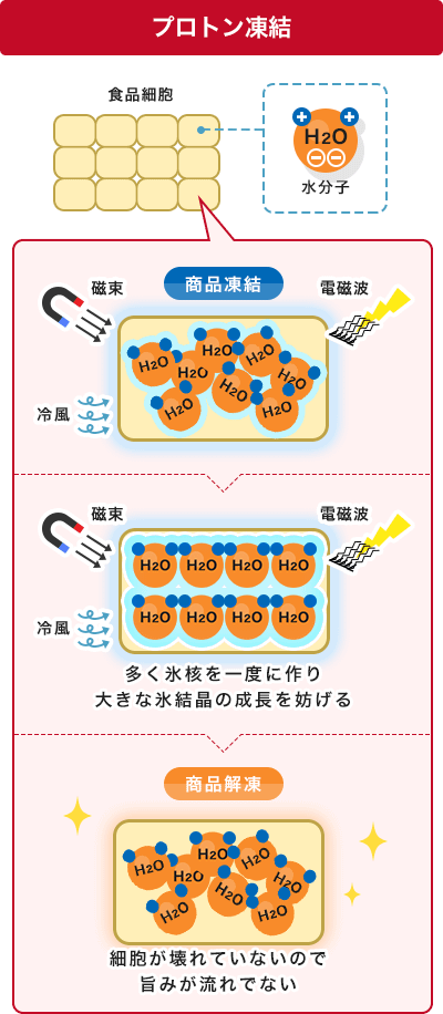 食品の細胞破壊を防ぎ、解凍時のドリップ・離水量を抑え、食品本来の品質を保つプロトン凍結技術は食品の生産地・加工地の商品価値を高める重要なアイテムであり、国内はもとより海外でも需要が伸長傾向にあります。